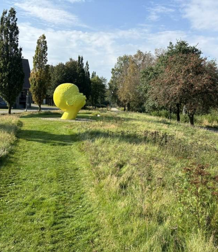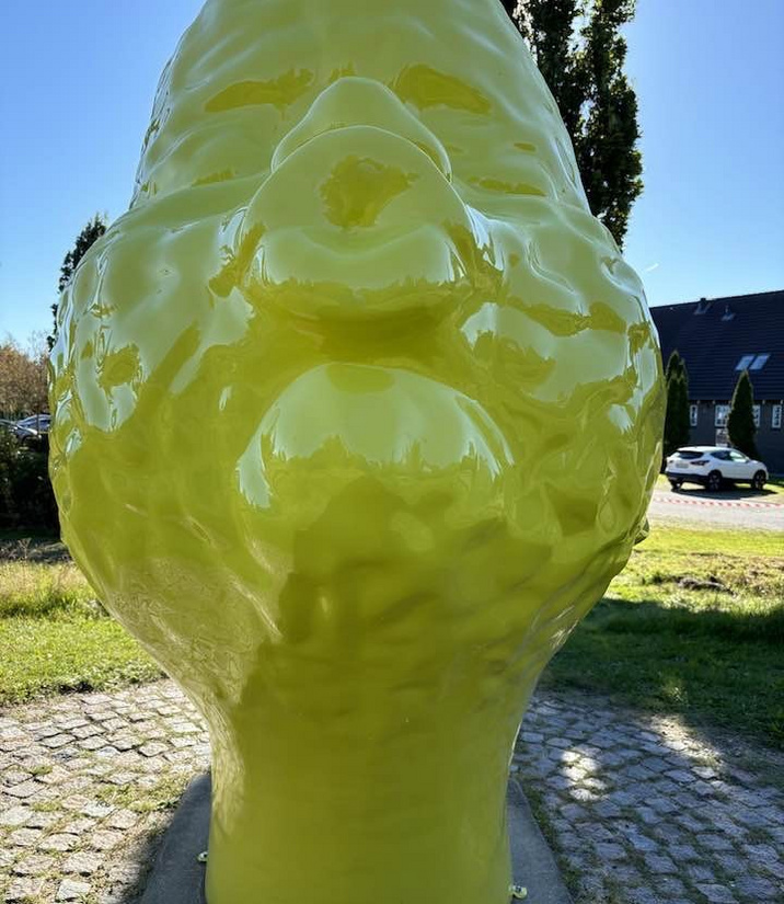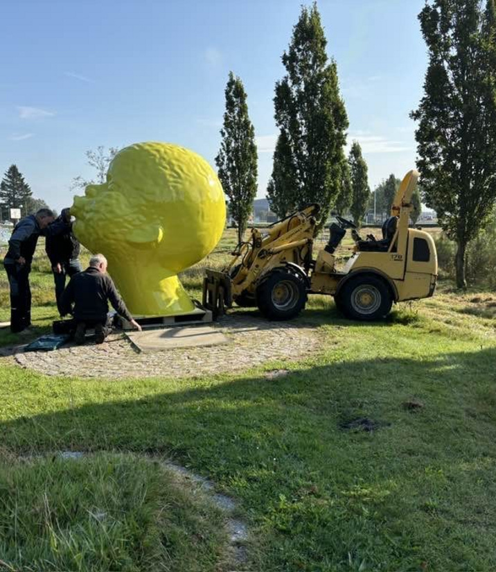 Det gule hoved - “Give me i Kiss” af den kinesiske kunstner Qian Sihua i Skulpturparken har fået en gennemgribende hovedreparation. Skulpturen var ikke stærk nok til det danske klima, da den var punktsvejset. Nu er den blevet sandblæst, og efterfølgende beklædt med et lag glasfiber, inden den blev lakeret i den flotte gule, skinnede farve igen.