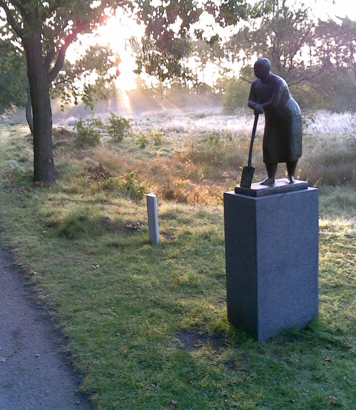 ”Havekonen” var kunstnerens nabo, Sigrid. Sigrid var optaget af jord og planter og var model for flere af Lotte Olsens skulpturer.