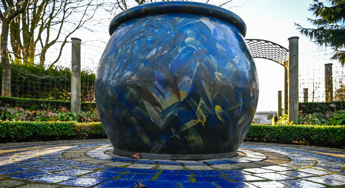 Krukken står i Ediths have, Hans Jensensvej 3, ved 'Teddy Bear Art Museum'.