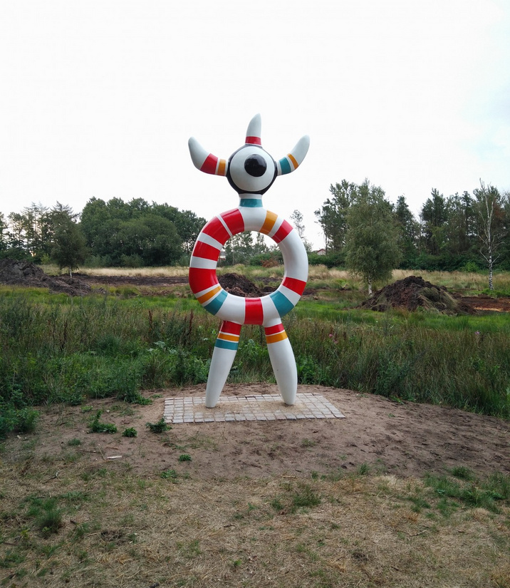 Urethan-bemalet glasfiber på jern-skelet. Anskaffet i 2018.