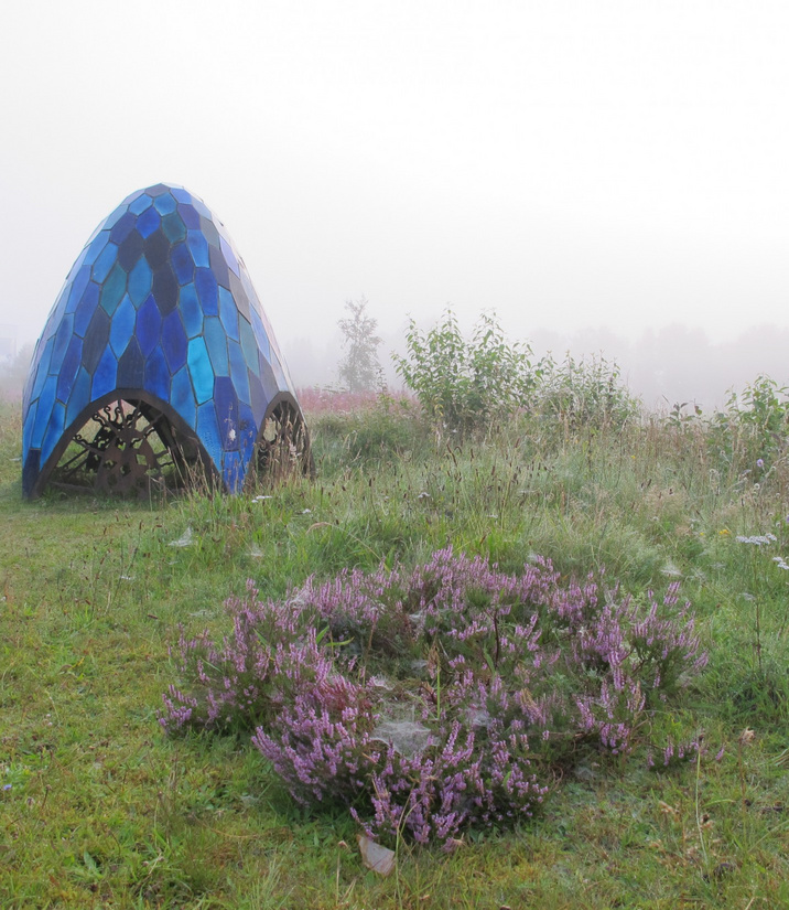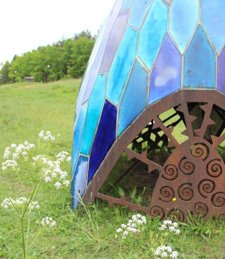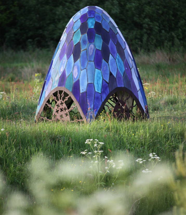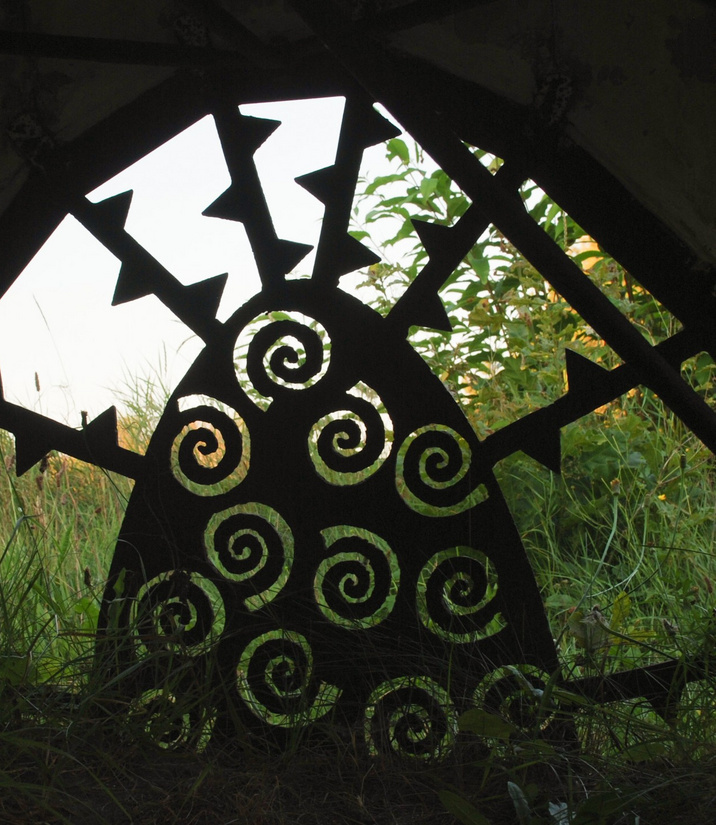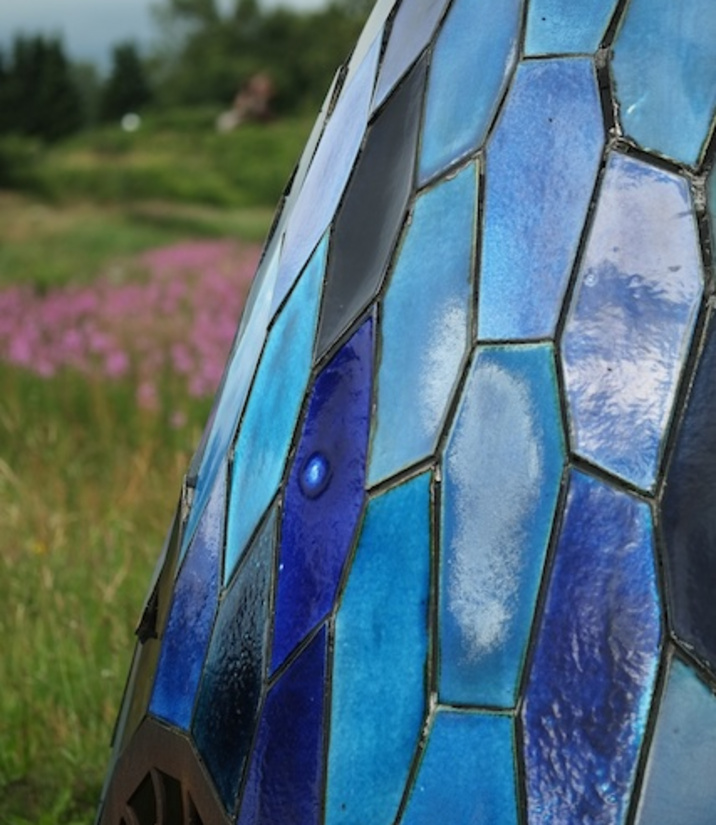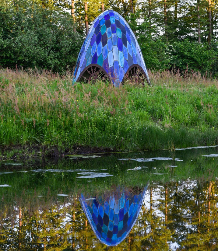 Fajance og jern. Dimensioner: 240x220 cm. En skive-konstruktion som også Gaudi kendte til. Der er anvendt computerteknologi ved konstruktionen. Fremstillet på Tommerup Keramiske Værksted, Nordeuropas største af sin art.