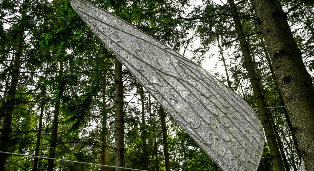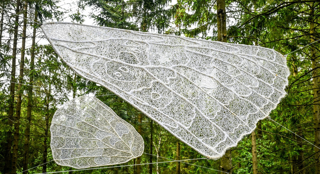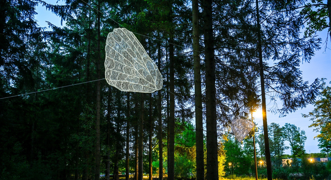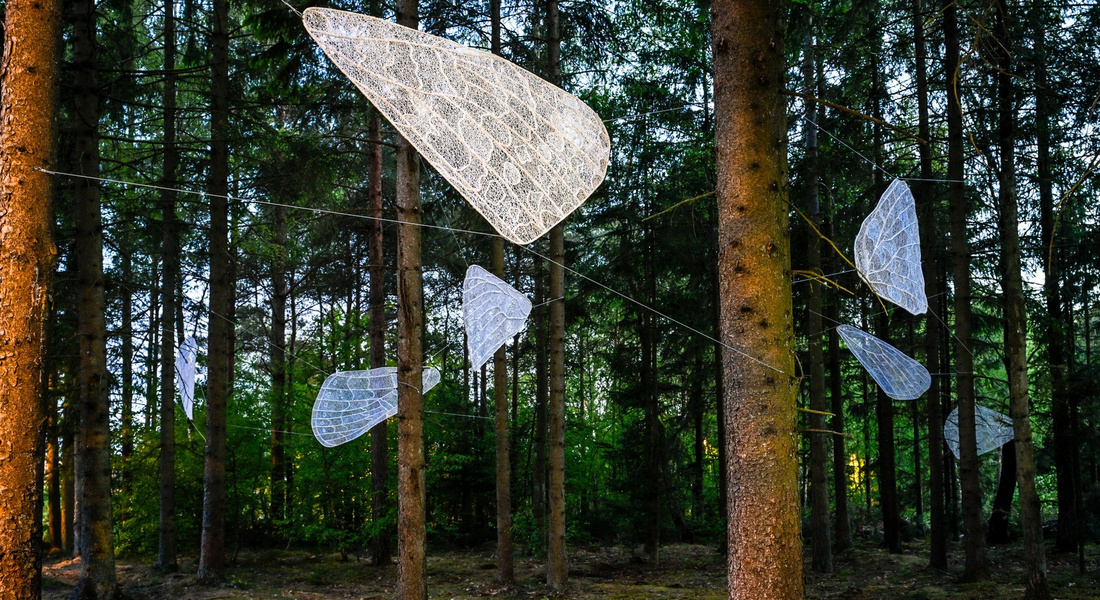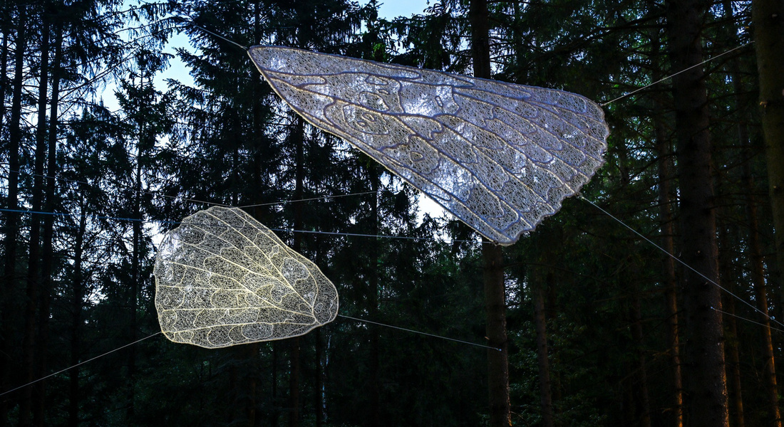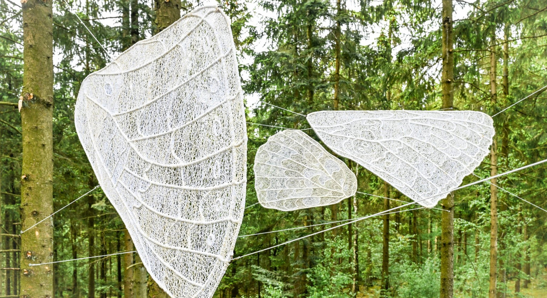 Installationen ”Sommerfugleskoven – et requiem” viser den omvendte rækkefølge af processen fra liv og livsglæde til eventuel uddøen. De syv kæmpeforstørrelser af hvide vinger, i form og mønstre som okkergul pletvinge, får i løbet af tiden nyt liv ved at skifte farve fra hvid, dødens farve, til farverne okkergul/rustrød. Det er rustens farver, der påvirket af vind og vejr breder sig ud fra vingernes jernskelet til garnet, som vingerne er beviklet med.