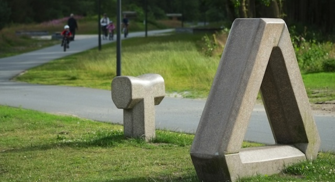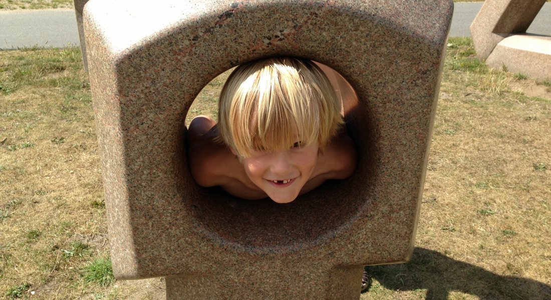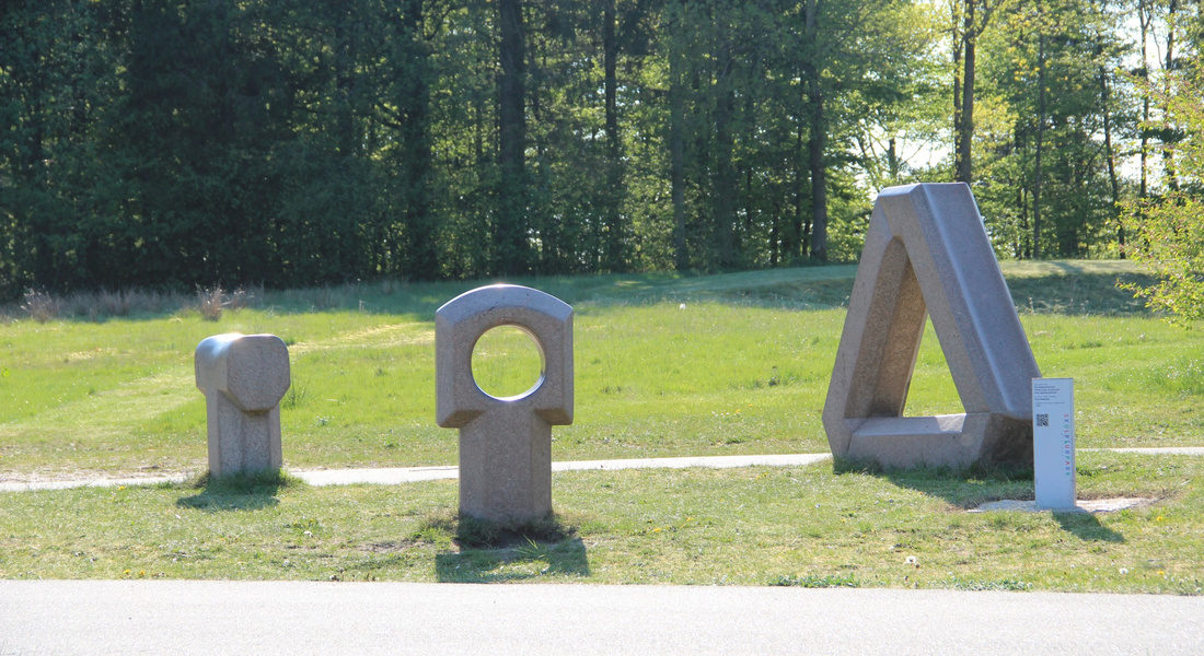 Skulpturerne er for længst blevet blanke af mange børns rutscheture. Var en del af den store sommerudstilling i 1993.